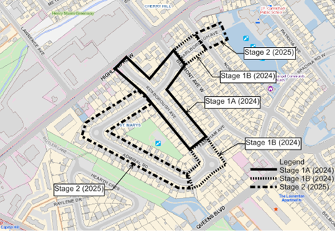 - Stage 2 - Admiral Rd. from Roxborough to Stage 1 limit (access path on Admiral) and Marlborough from North Dr. to J F Carmichael Public School– Full road reconstruction