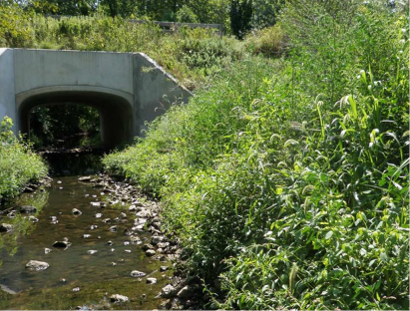 - Natural channel design, with appropriate landscaping to stabilize the creek banks