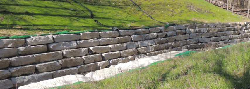 A typical armoured stone retaining wall consists of a combination of hard and soft armourstone. It includes a hard armoured wall, which consists of large, rectangular blocks of stone that are placed on top of each other forming a wall along the streambank. The large rectangular stone blocks make up the main structural component, with the stone’s size and weight it can help to prevent damage from flowing water.