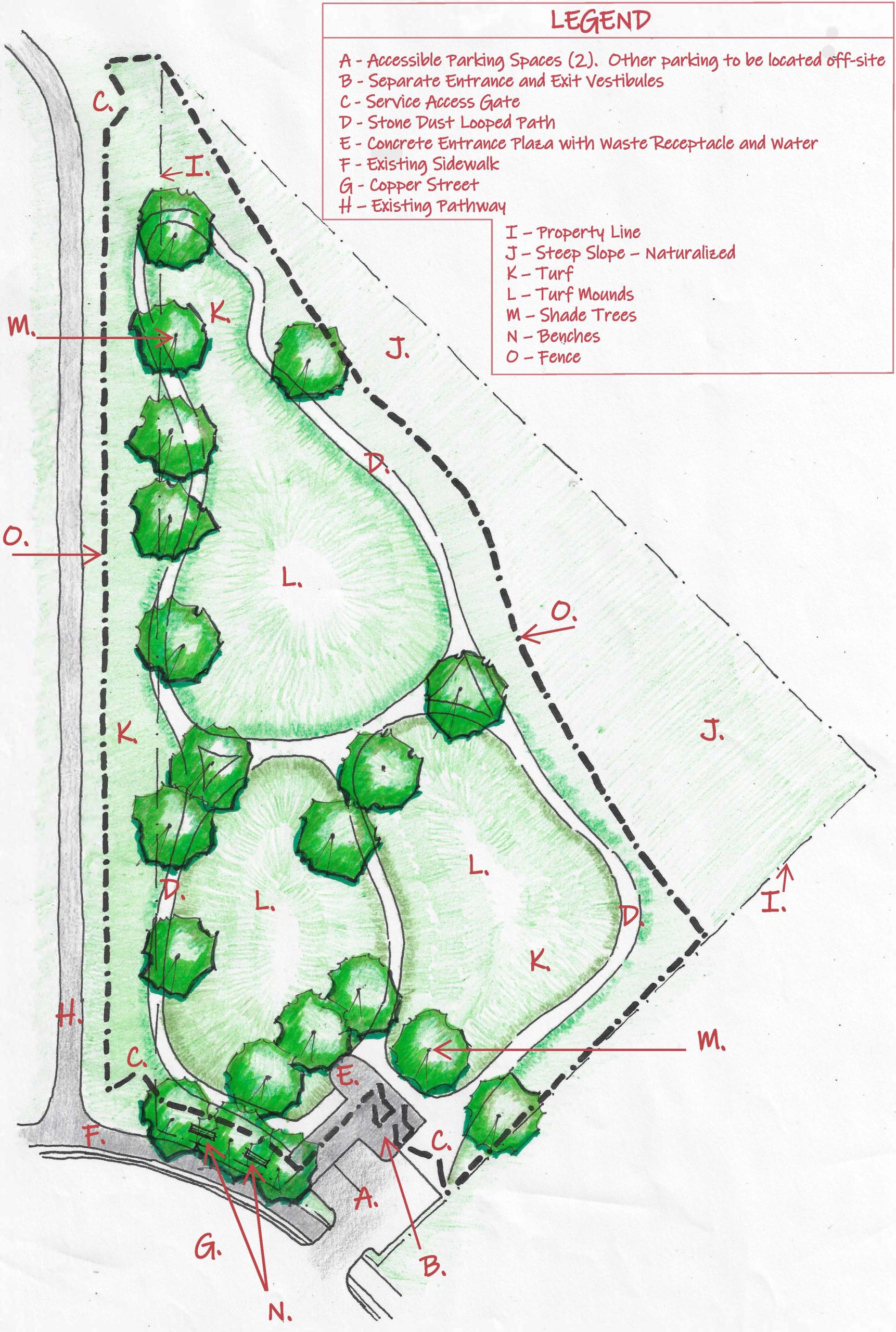 The entrance to the dog park will be located along Copper Street, which is where the water, garbage and dog waste unit will be located.