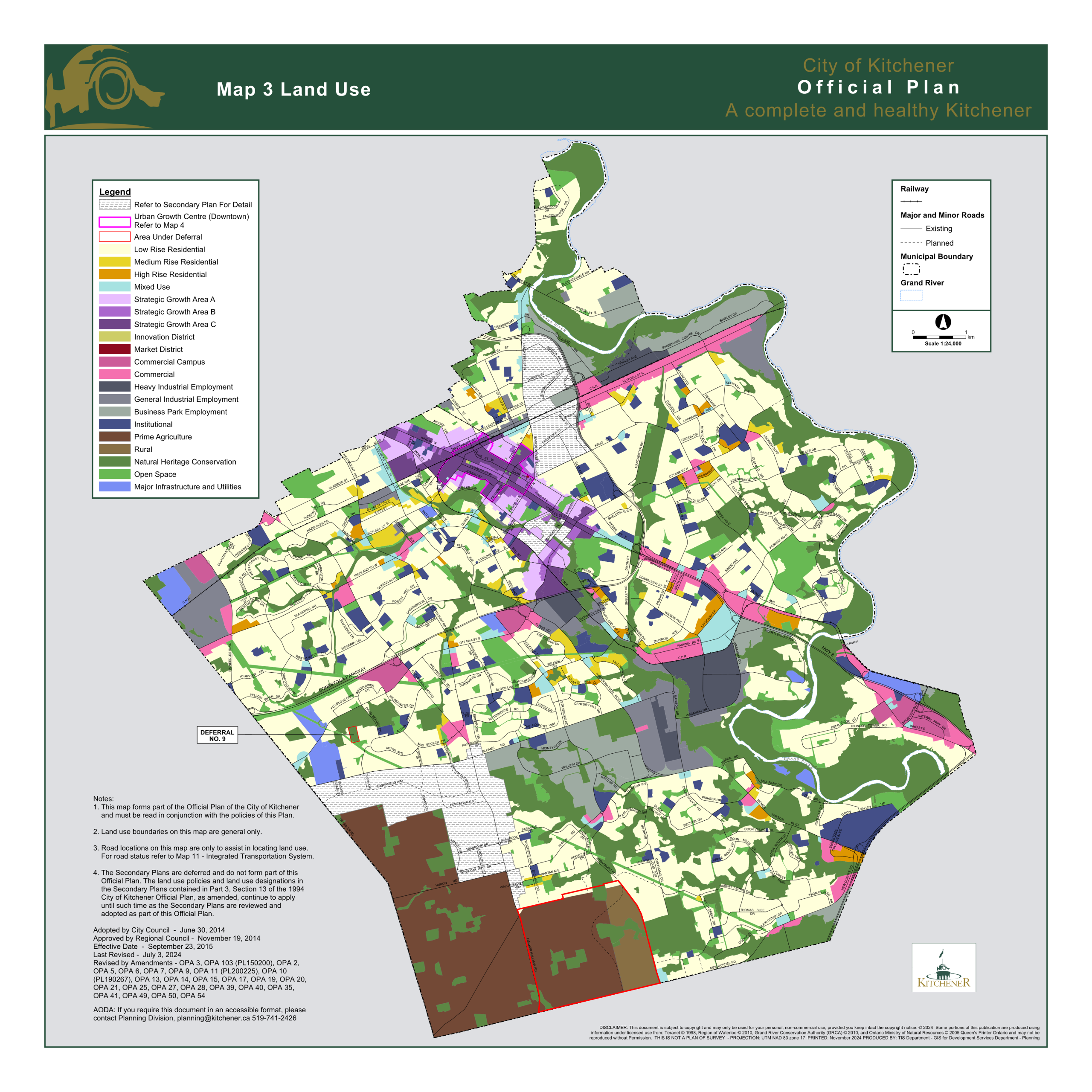 The map outlines the study area on the land use map of Kitchener, the community located in the southwest part of Kitchener.