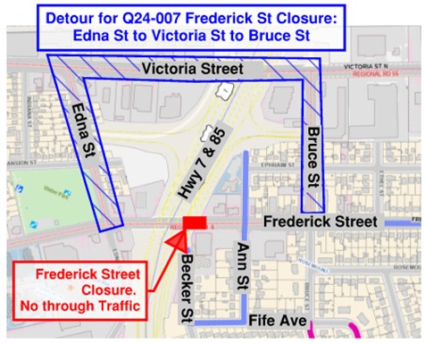 Intersection Closure of Frederick Street (near Frederick St/Hwy 7/85 bridge)