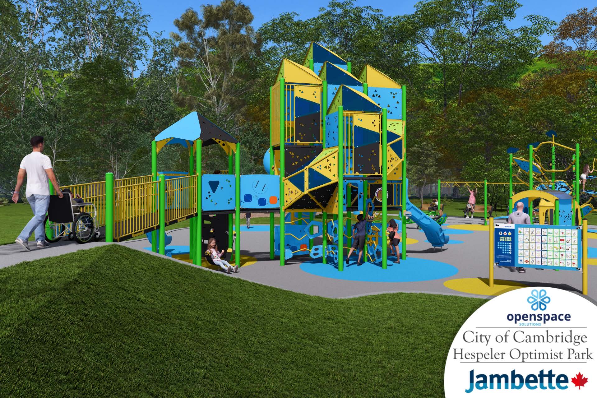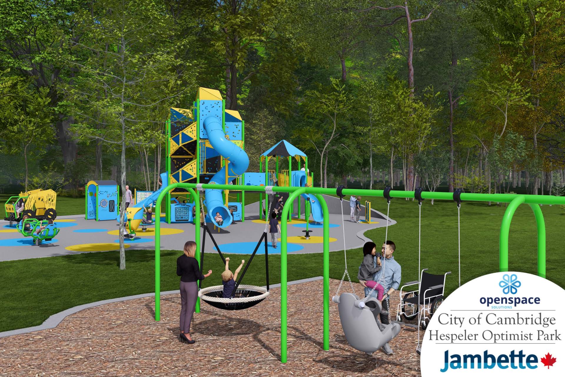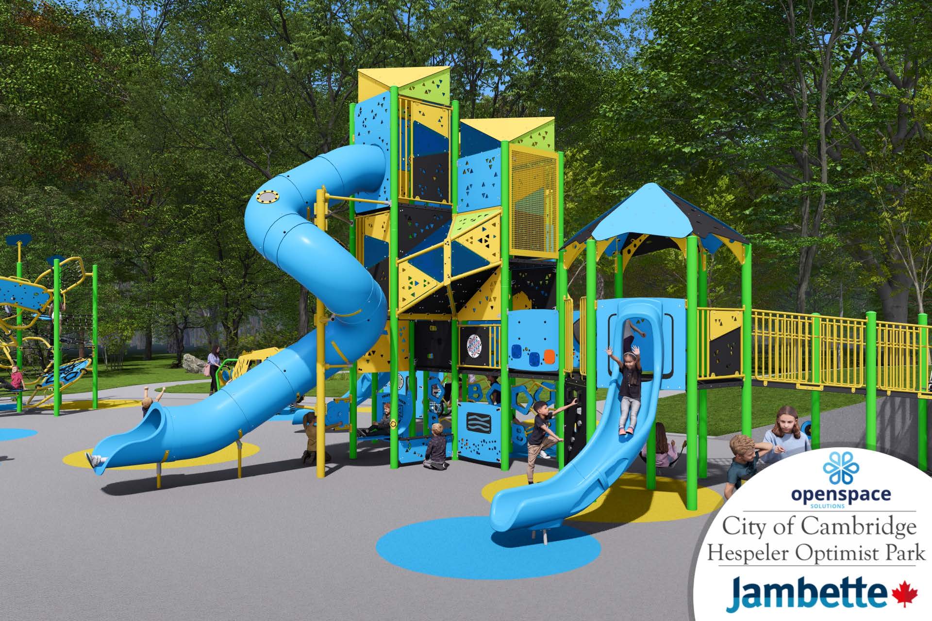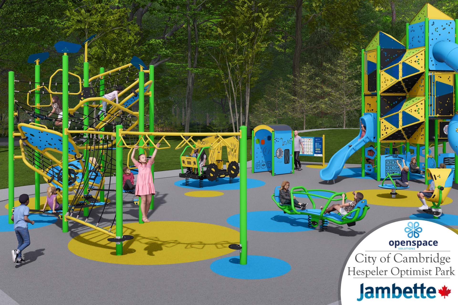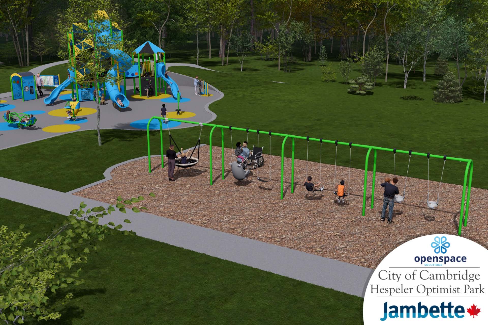 The City is happy to share the concept design developed for the Hespeler Optimist Playground renewal project. This design focuses on providing a fun, accessible, and engaging play environment for local families. Community members are invited to review the renderings as we continue moving the project toward construction.
