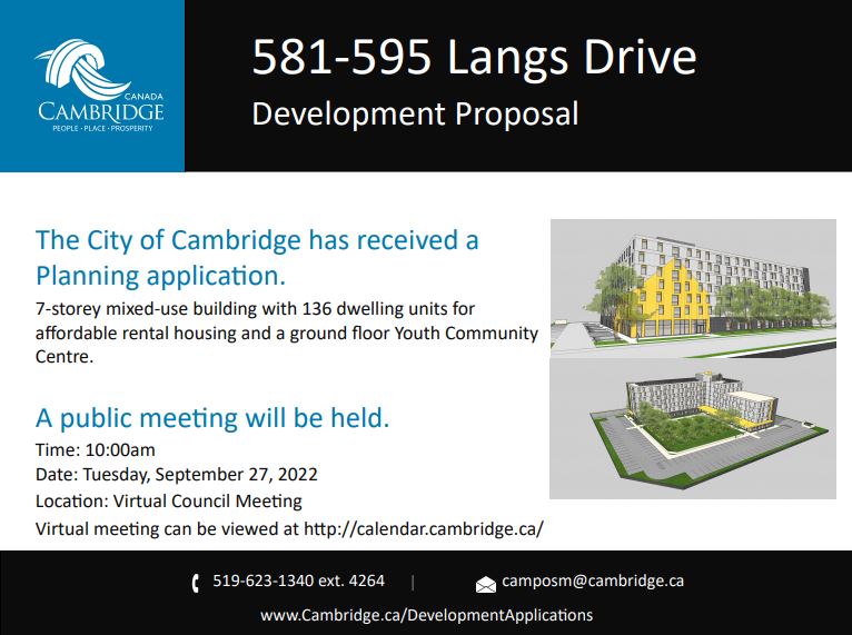 At a Special City of Cambridge Council meeting held on September 27, City staff formally introduced the Planning application to Council and the Public. Regional staff and IBI Group opened the meeting with a brief presentation about the project. This was followed by a presentation of City Planning staff who outlined the following details of the required Official Plan Amendment and Zoning By-law amendment: