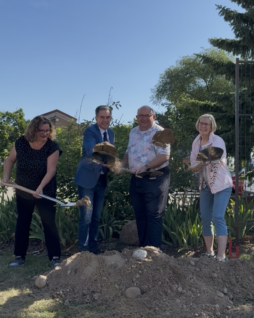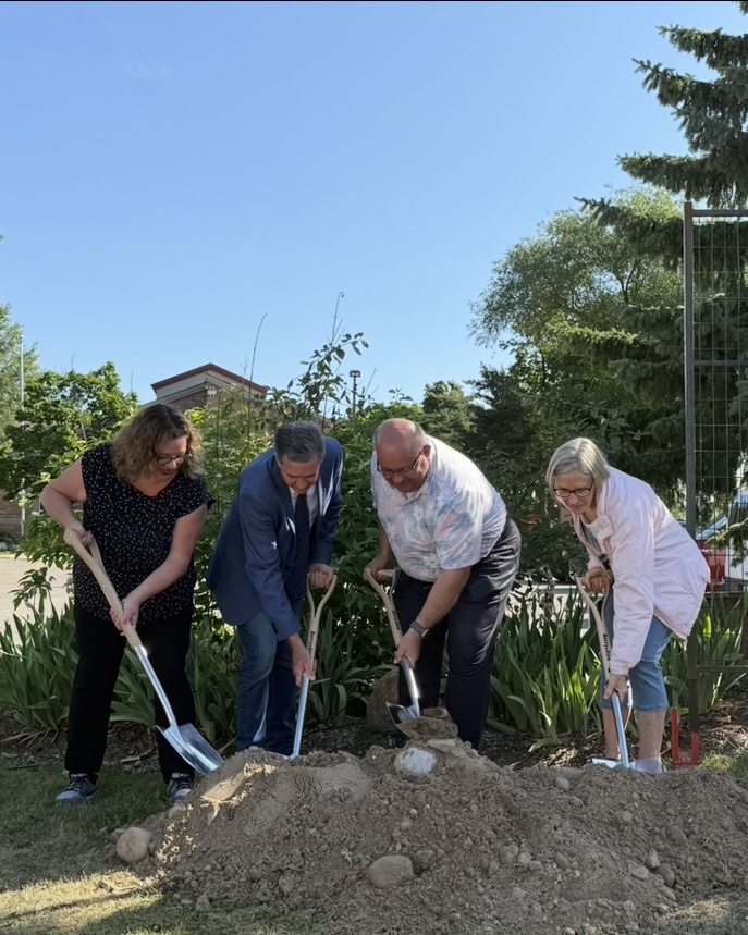 The City of Kitchener officially broke ground at the Mill Courtland Community Centre earlier today, beginning a series of upgrades that will expand and enhance the centre's programs and services. Member of Parliament Tim Louis, Mayor Vrbanovic, Councilllors, community members, and city staff were on hand to kick off the project, which will continue through the end of 2026.