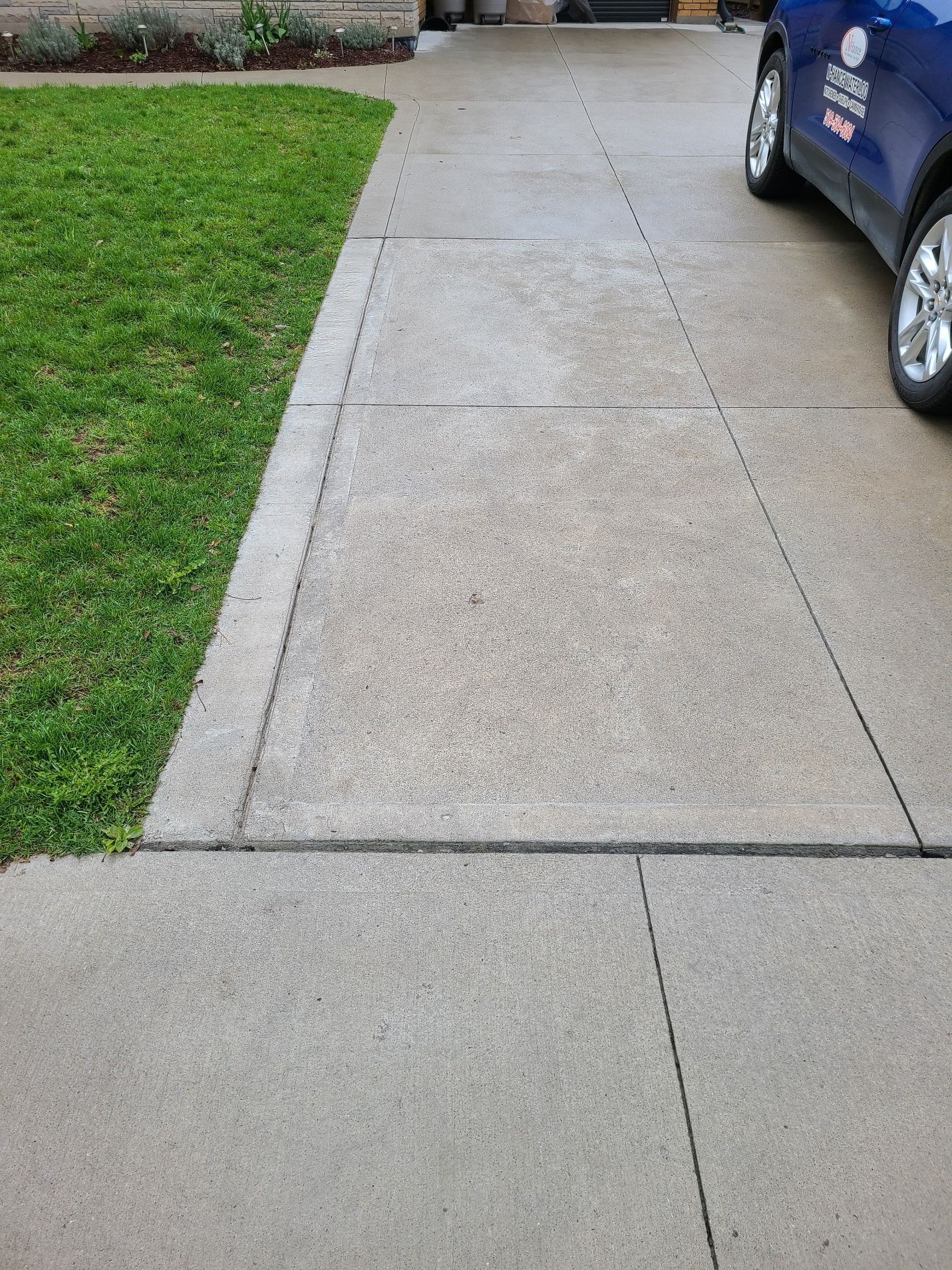 Image showing a concrete driveway that has been patched next to the sidewalk following construction