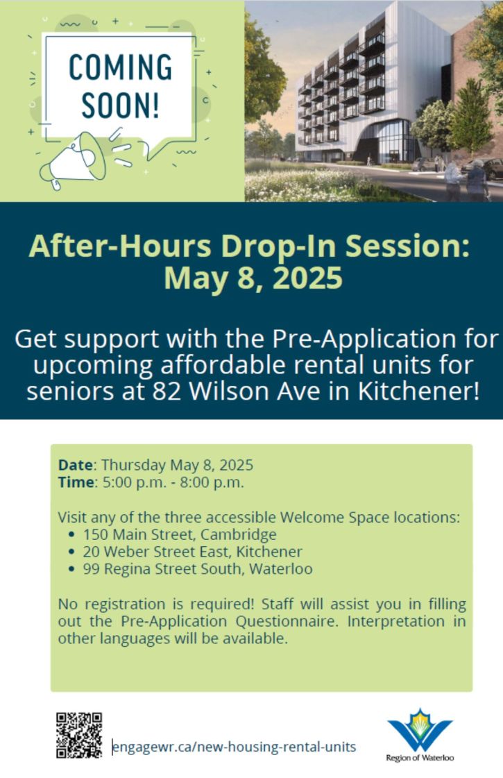 Drop by any of the Region of Waterloo’s Welcome Spaces below on Thursday May 8th from 5:00 p.m. to 8:00 p.m. for support.