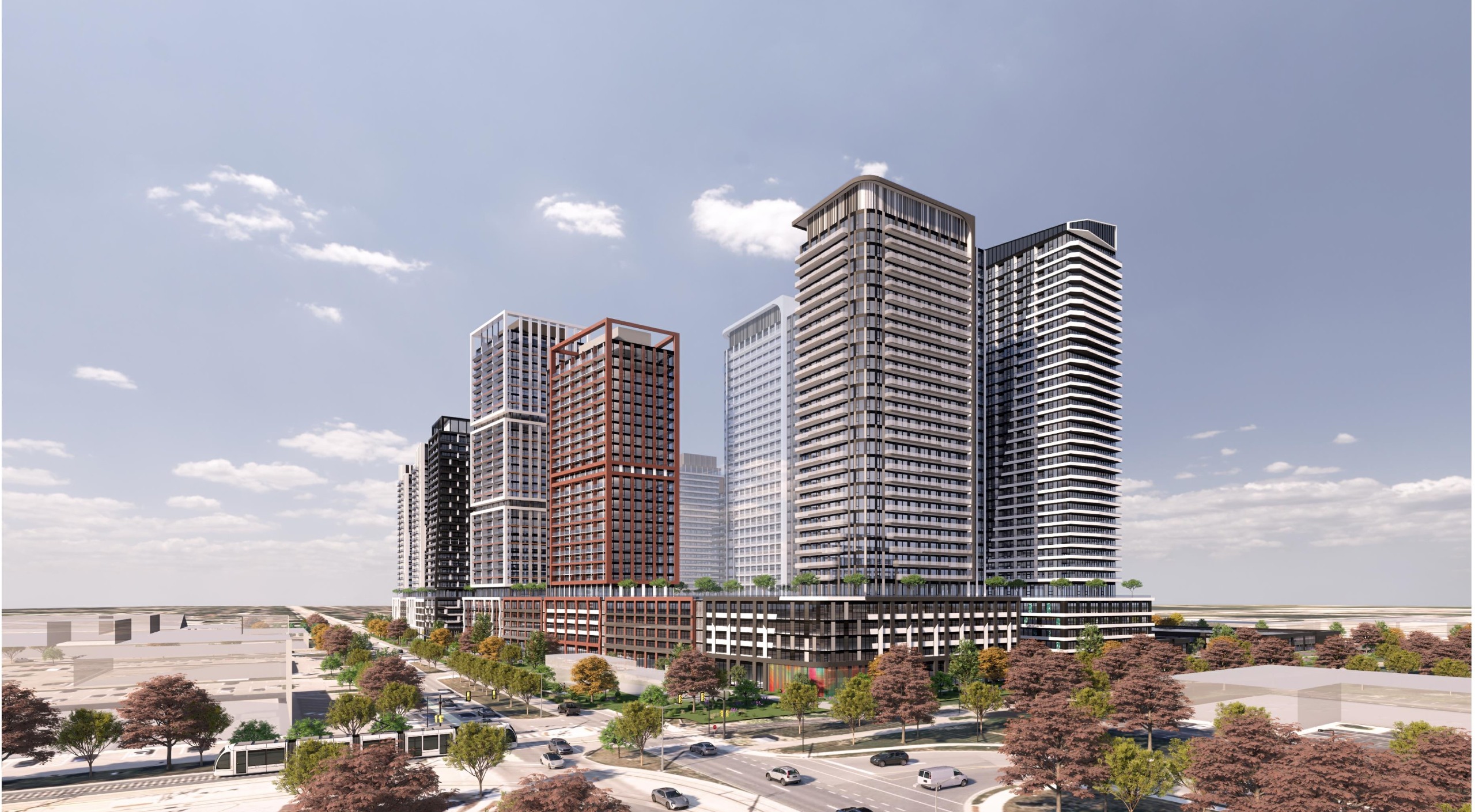 Northfield Equities Inc. is proposing to develop a high-density residential community with commercial and employment uses on the subject lands. The plan includes 13 high-rise towers, five 1-storey buildings for employment/commercial uses and 0.41 hectares of privately-owned publicly accessible spaces (POPS).