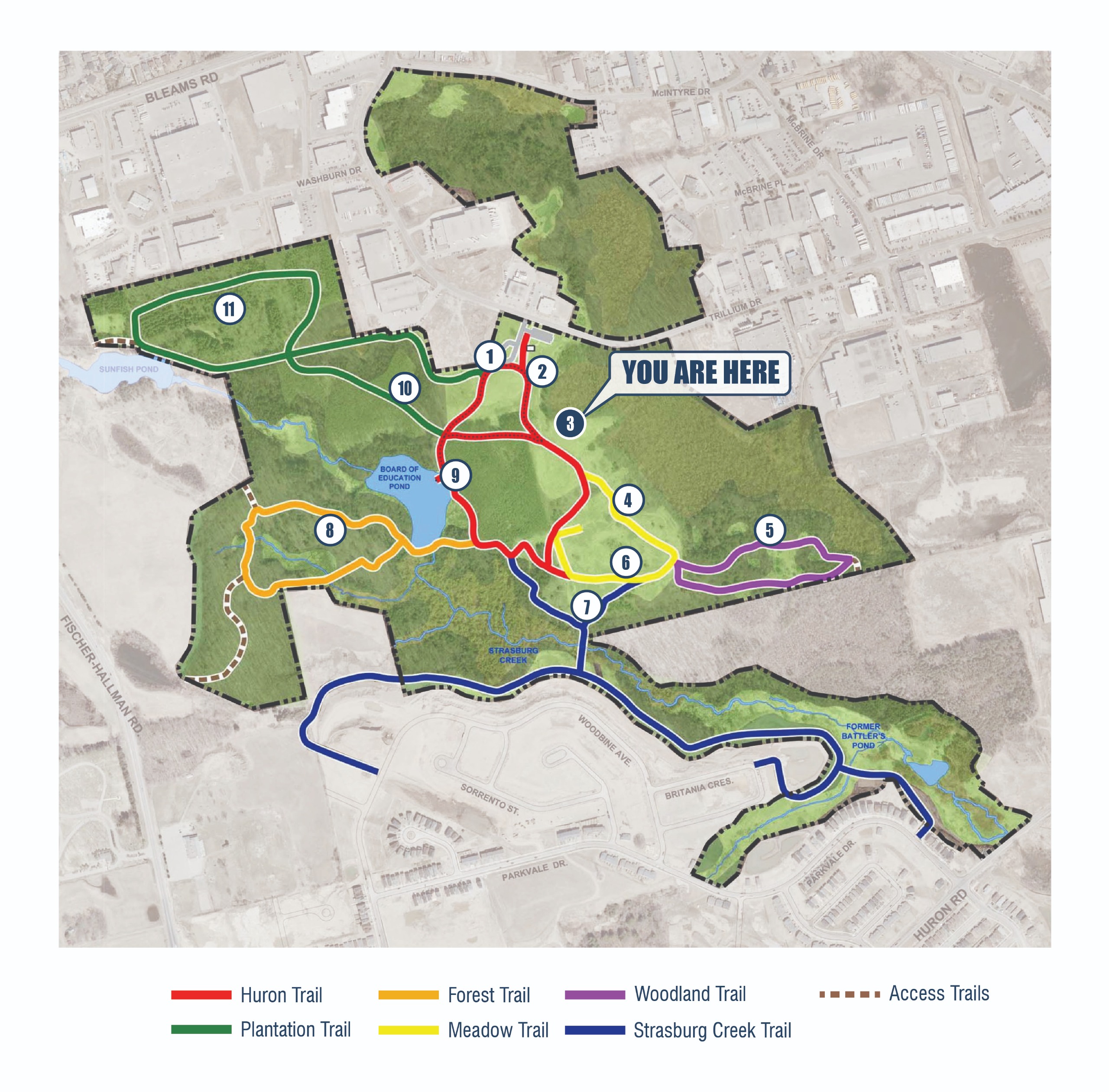 Photo of birdhouses in the meadow along the Huron Trail in Huron Natural Area.