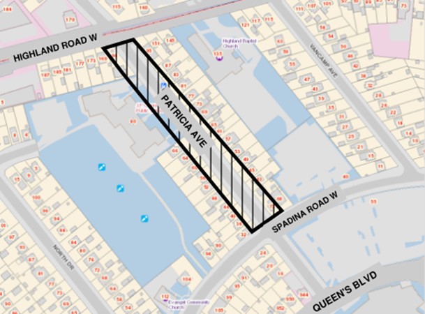 We are placing sod for stage 3 of this project, which affects Patricia Avenue from Highland Road West to Spadina Road West. This work is part of the Council-approved Capital Budget to renew aging city roads, sanitary sewers, storm sewers, watermains, and sidewalk for current and future needs. See the map of the work area below.