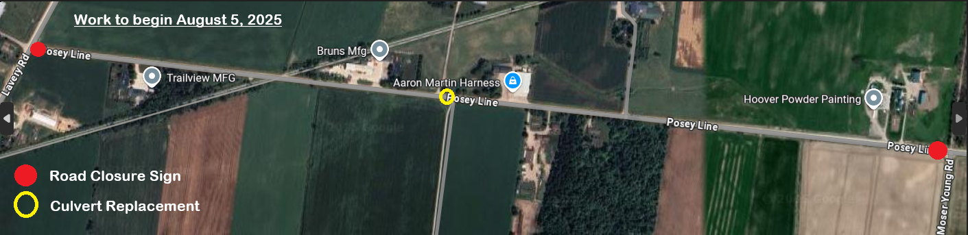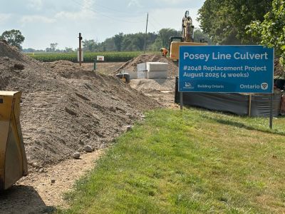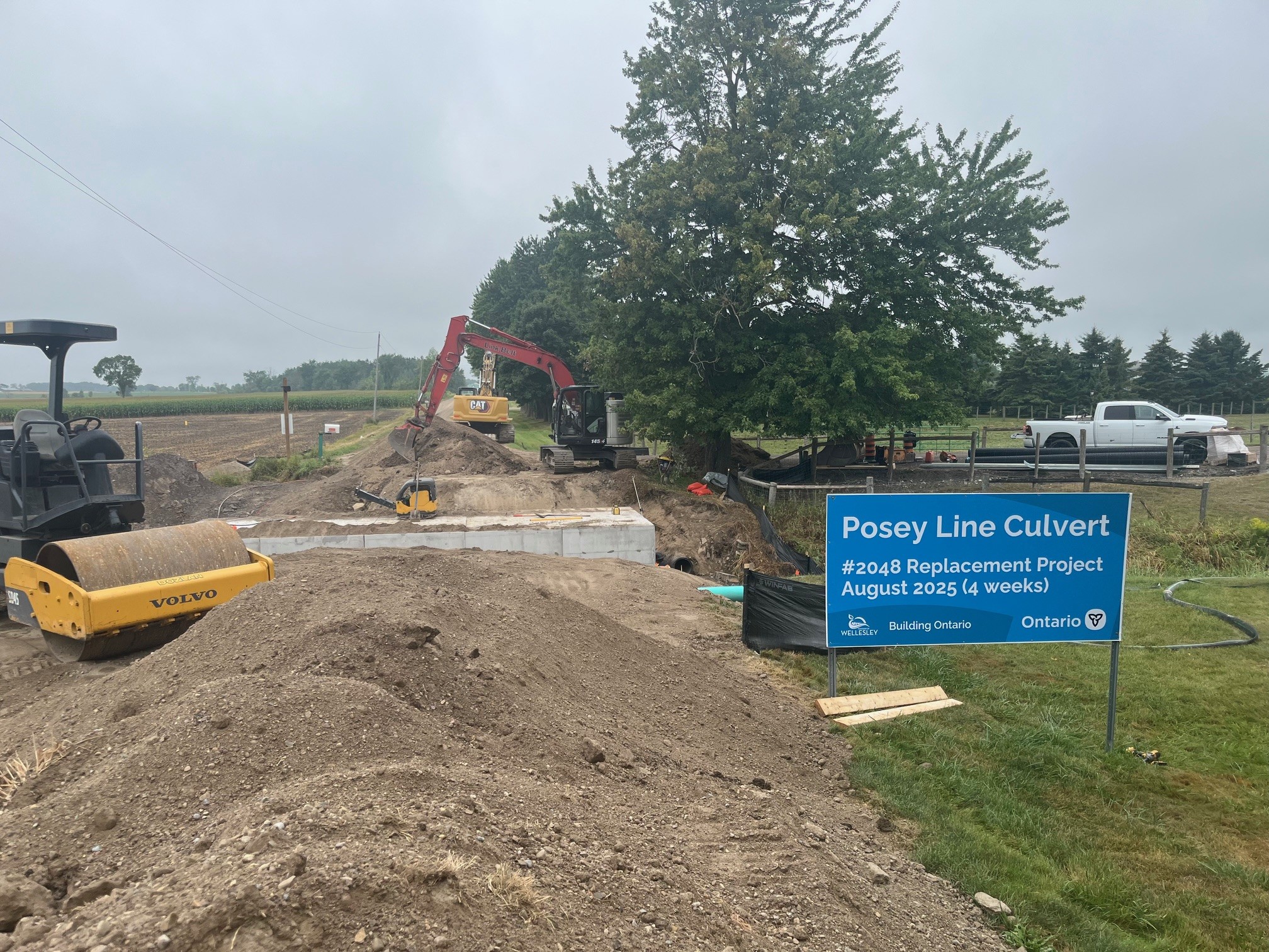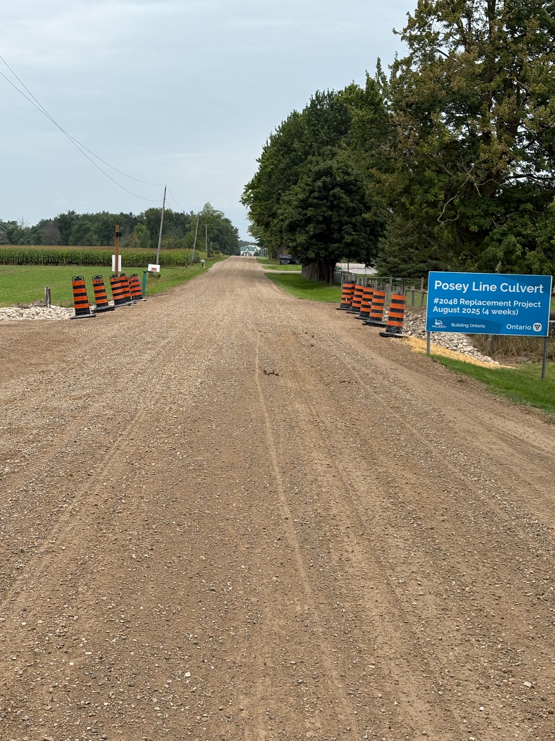 This project has been identified as a top priority by our Ontario Structure Inspection Manual (OSIM) reports and will begin on our about August 5, 2025 with a road closure on Posey Line between Moser-Young Road and Lavery Road for approximately 4 weeks.
