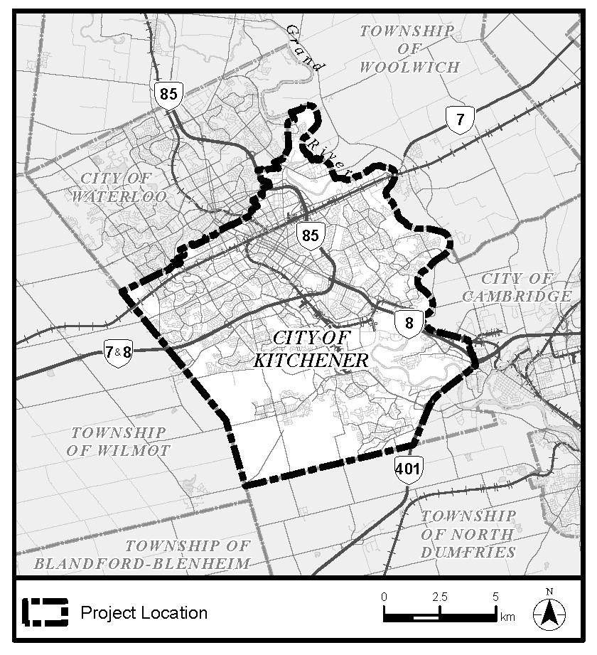 The City of Kitchener is undertaking an Integrated Sanitary Master Plan. The purpose of this Master Plan is to examine the City’s sanitary infrastructure needs in light of new planning policies, growth projections, and the current needs and issues that exist in our community. The Study is being undertaken within the City limits, as shown on the map.