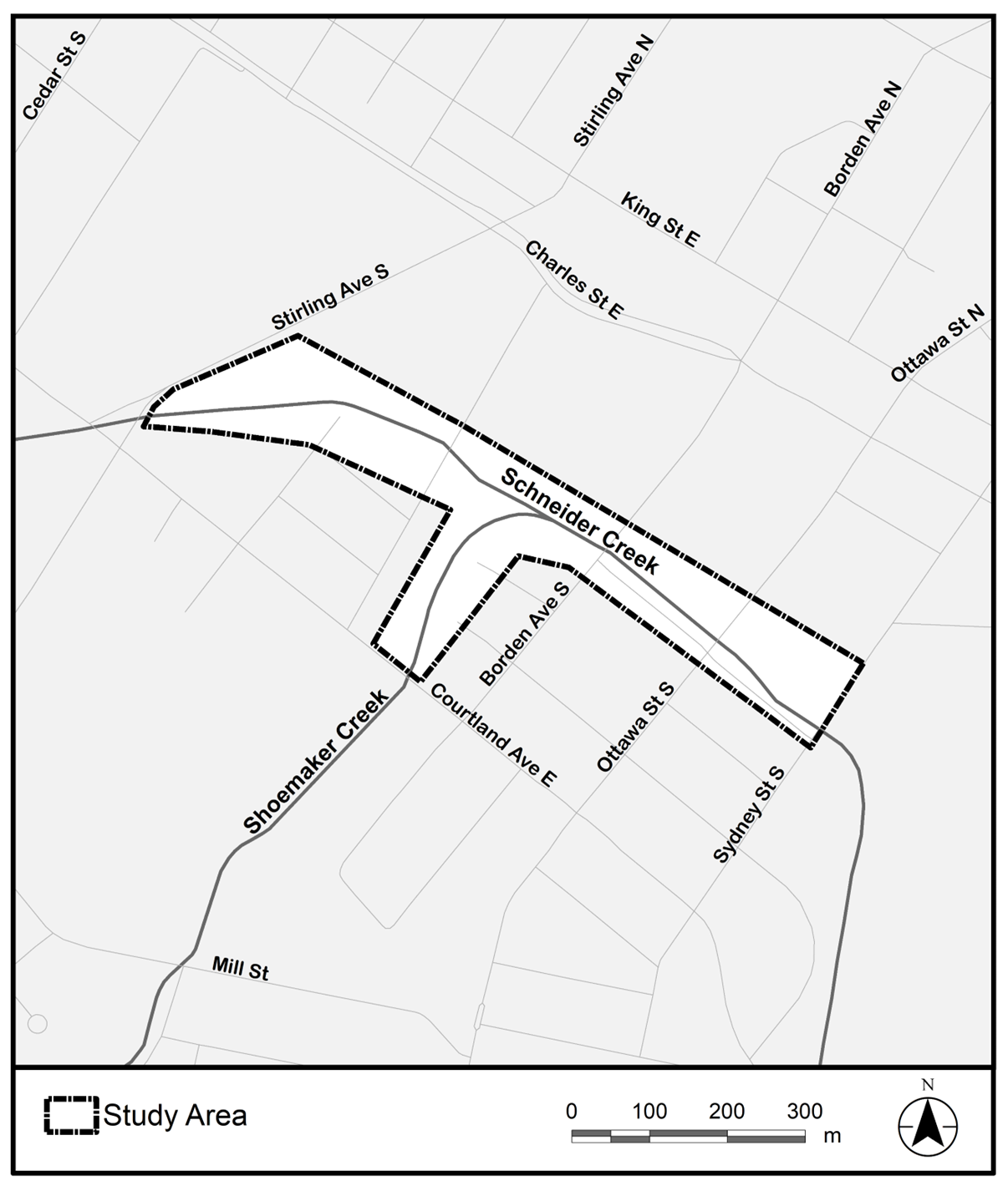The City of Kitchener is planning to commence a Class Environmental Assessment (EA), to fully review the environmental risks of this area, and present design options to mitigate those risks. Expanding and naturalizing the creek boundaries to accommodate the flows would provide greater protection, and environmental benefits such as flood mitigation and natural habitat. In addition, this project will look at options for the replacement of the concrete channel with a wider natural channel, which would improve the floodplain by reducing its limits, thereby minimizing potential damage as a result of flooding from larger storm events.