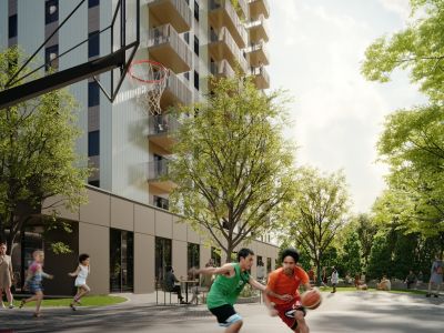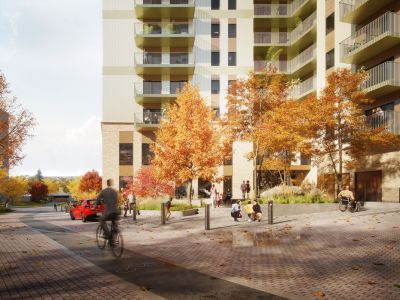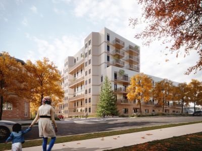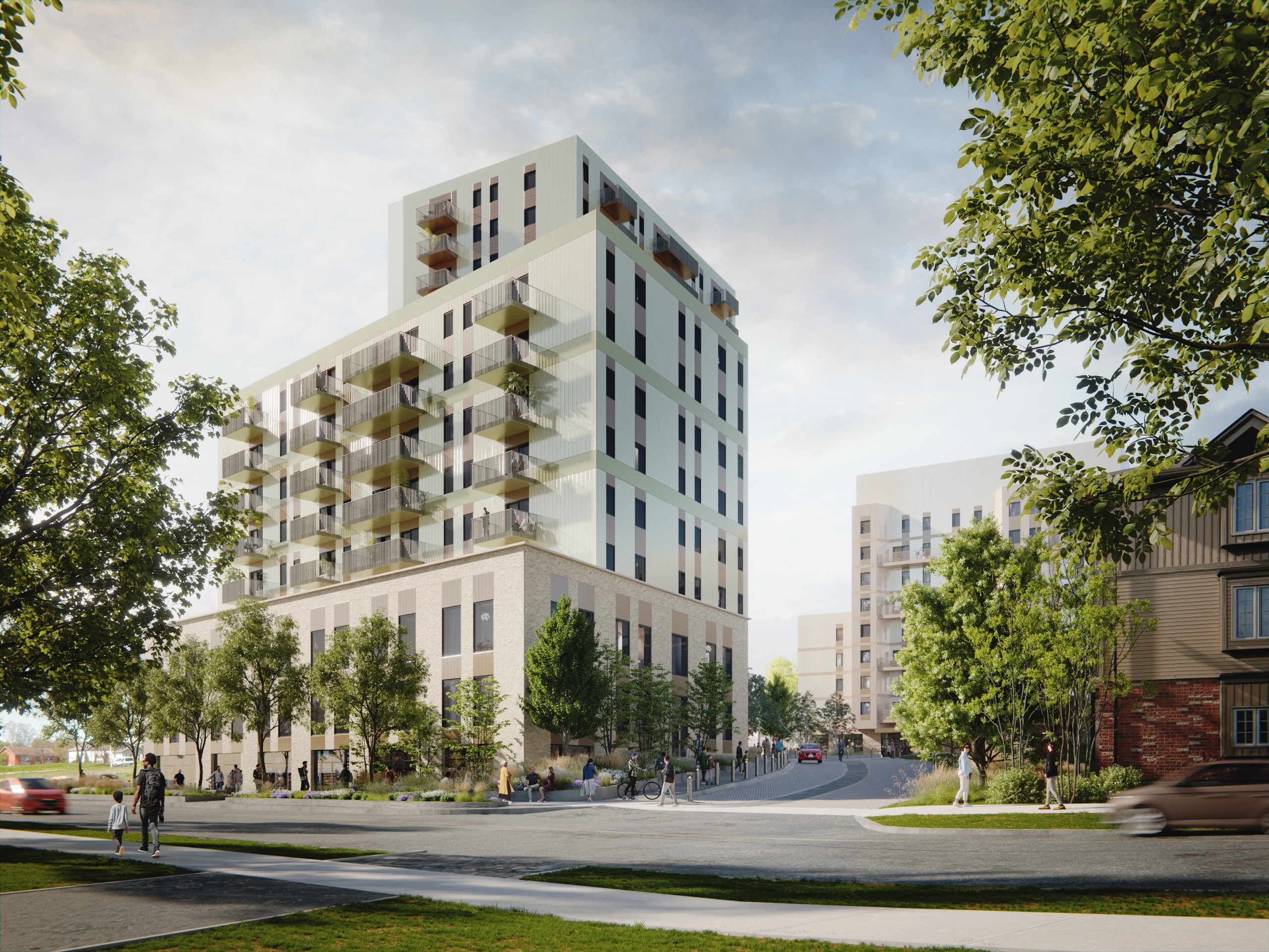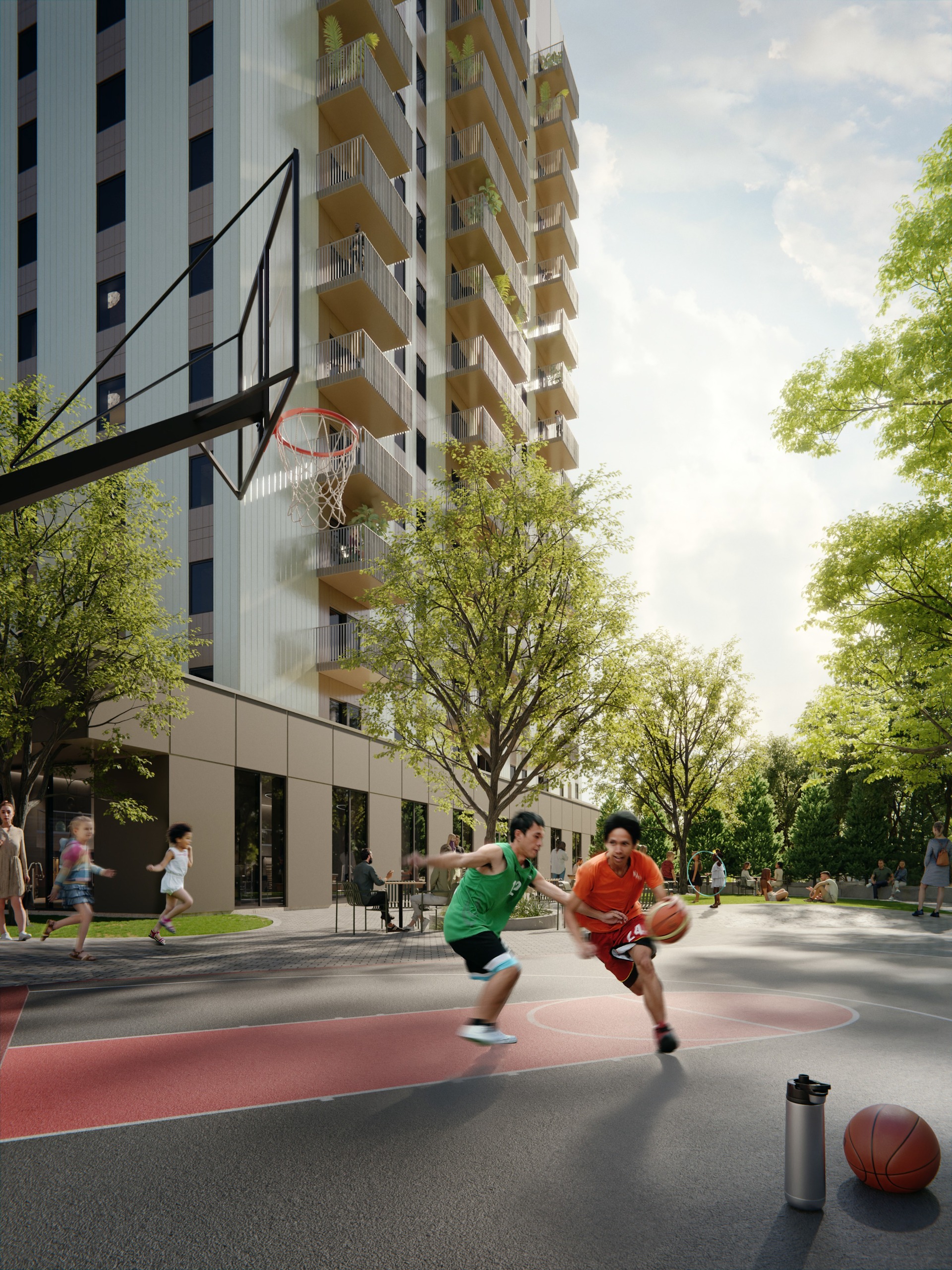 This new building has been designed as a 378 unit mixed-income building. The units are to be provided across 2 buildings, with one being a 16 storey building and another being a 9 storey building. The units will range in type from 1-bedroom units up to 5-bedrooms units. There will be 76 accessible units provided across all the different unit types.
