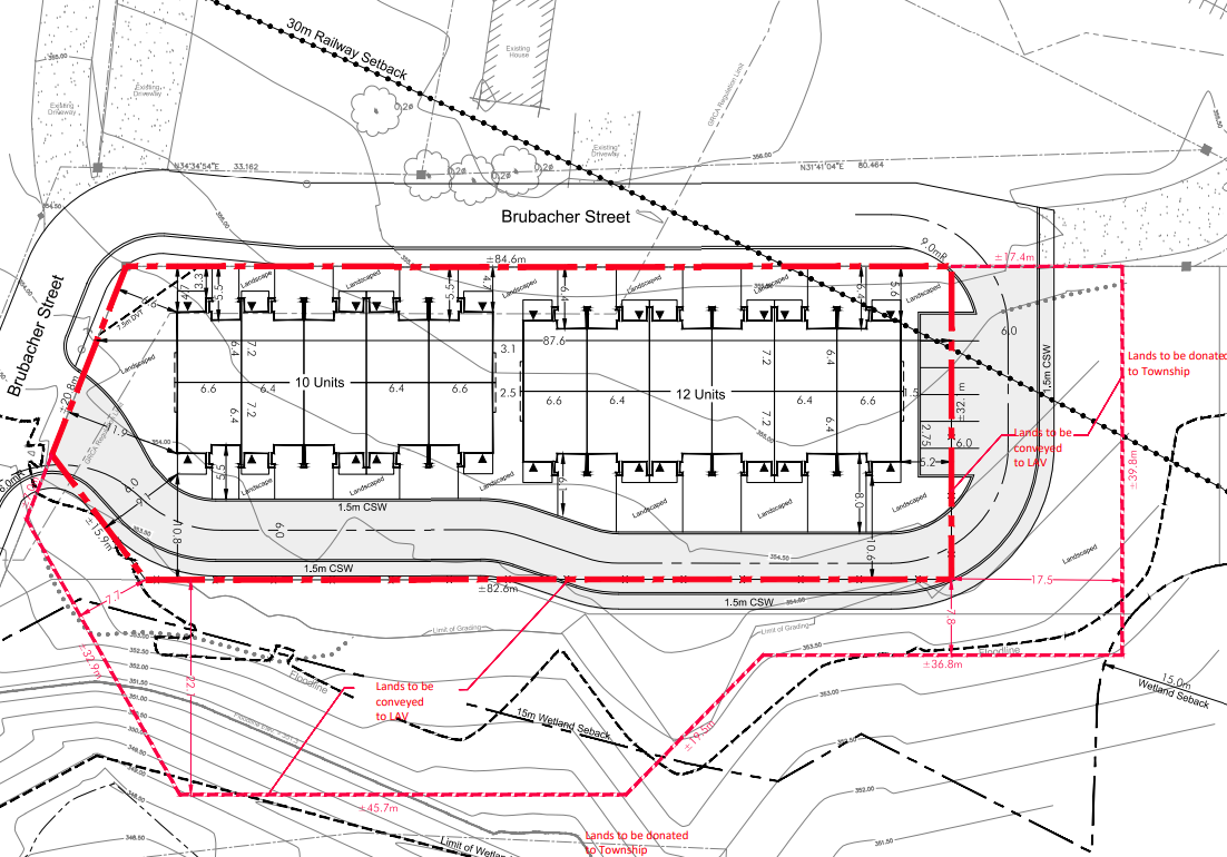 This property has been approved for 22 back-to-back townhome units. The development is currently in the site plan approval stage.
