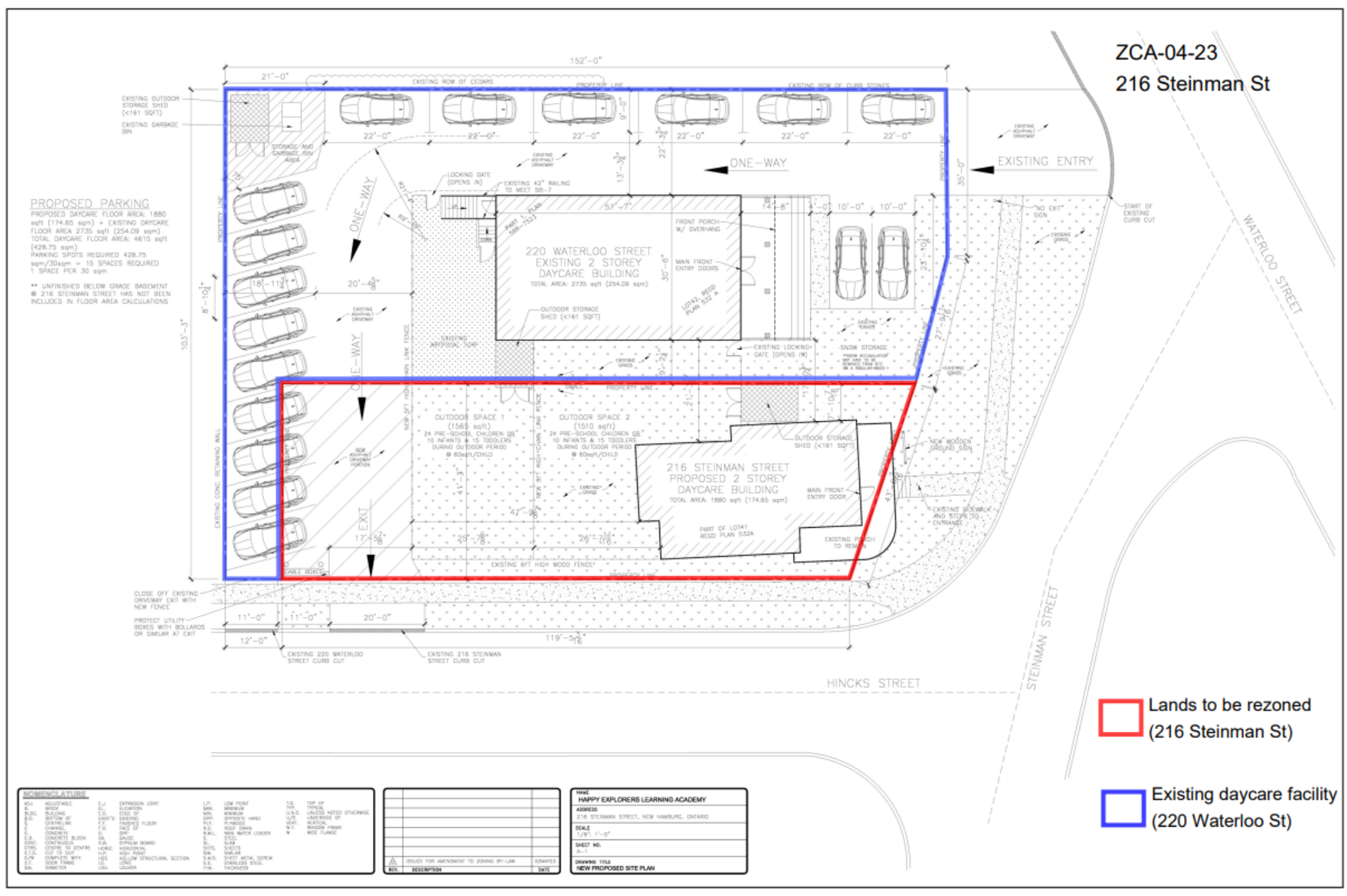 This application proposes to rezone the subject property from Zone 3 (Residential) to Zone 12 (Institutional) to facilitate the conversion of the existing dwelling and property to a day care facility along with associated parking and amenity areas as illustrated on conceptual site plan provided on the Notice of Public Meeting. The facility would be associated with the existing day care located on the abutting property at 220 Waterloo Street.